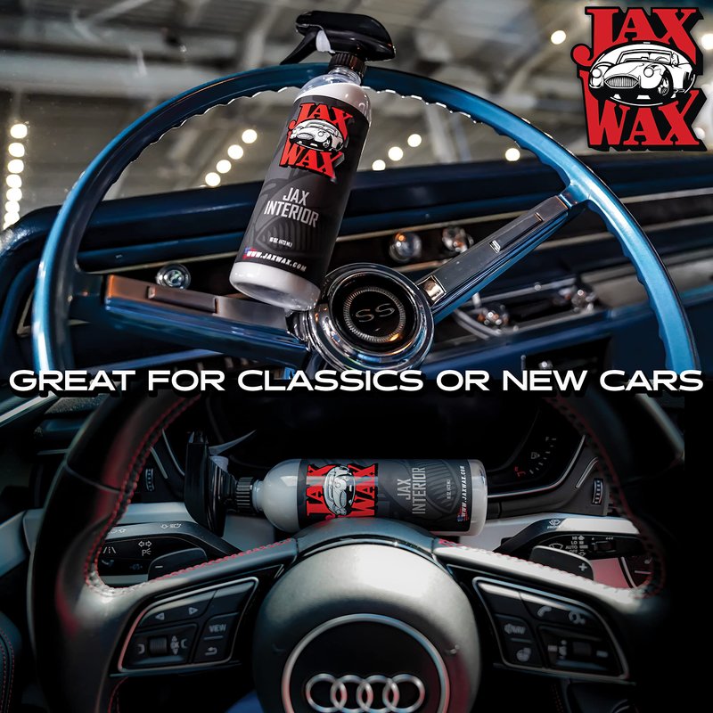 Jax Wax Interior Cleaner and Protectant is a vinyl and leather detailing spray that cleans, conditions and protects your car's interior surfaces. This interior cleaner and protectant is formulated with special oils and conditioners that help keep your car's inside looking like new. It removes dust, dirt, and grease while restoring a natural matte finish and providing superior protection against UV rays and cracking. The easy-to-use spray bottle makes it convenient and fast to apply. You'll love the results of this cleaner and protectant for your car's interior!
