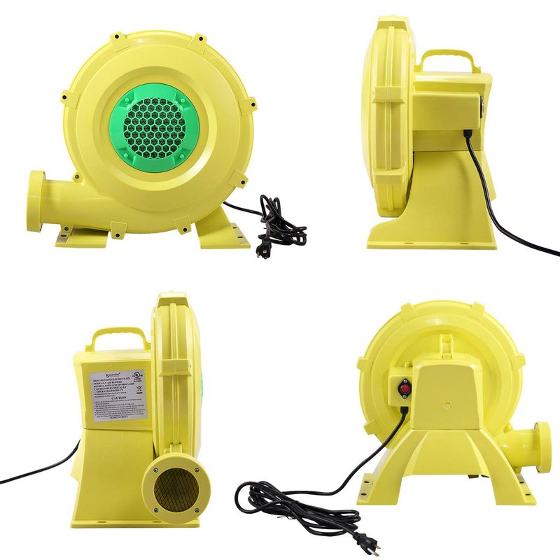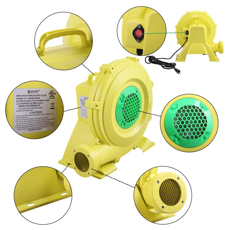 - đăPOWERFUL ELECTRIC BLOWERă: This practical electric blower with an eye-catching color scheme is designed for medium to large size inflatable structures. Equipped with an air outlet for a universal fit and a strong 950 watt motor, this blower can work quickly in inflating.