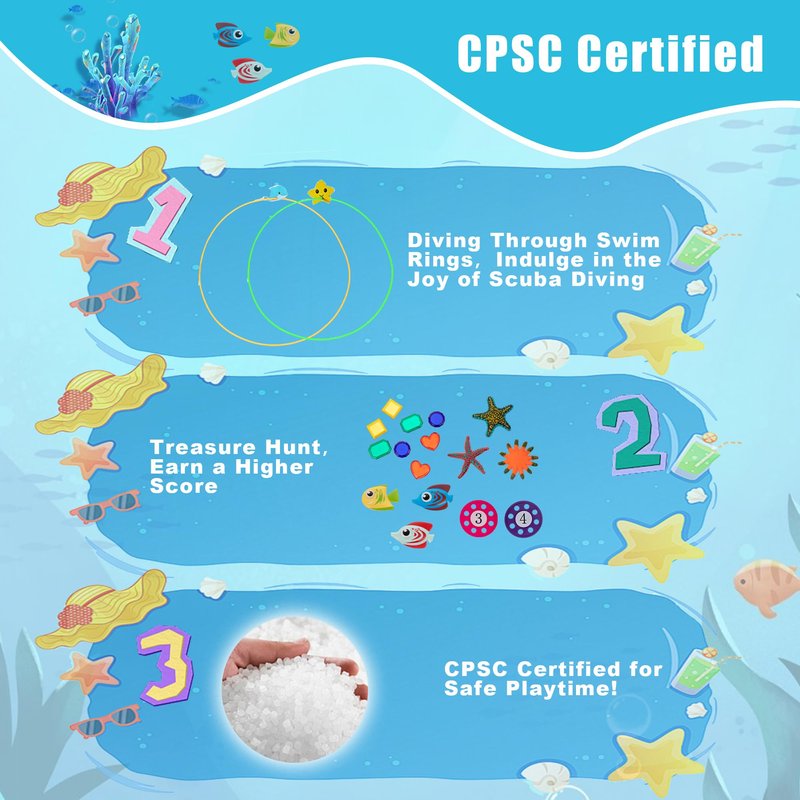 - 【Premium Quality & Safety】: Our non-toxic, BPA-free diving toys are safe and durable. Designed with smooth edges for safe play, they're leak-proof and split-resistant, ensuring a secure underwater experience for kids.