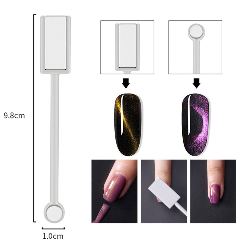 - How to Use:First, apply CAT EYE GEL POLISH; second, place the magnet on your nails for 10-15 seconds to get a cat eye effect (please keep the magnet side facing your nails, the closer you can, but do not touch the nail surface); third, immediately with UV light for 2 minutes or LED light for 60 seconds.