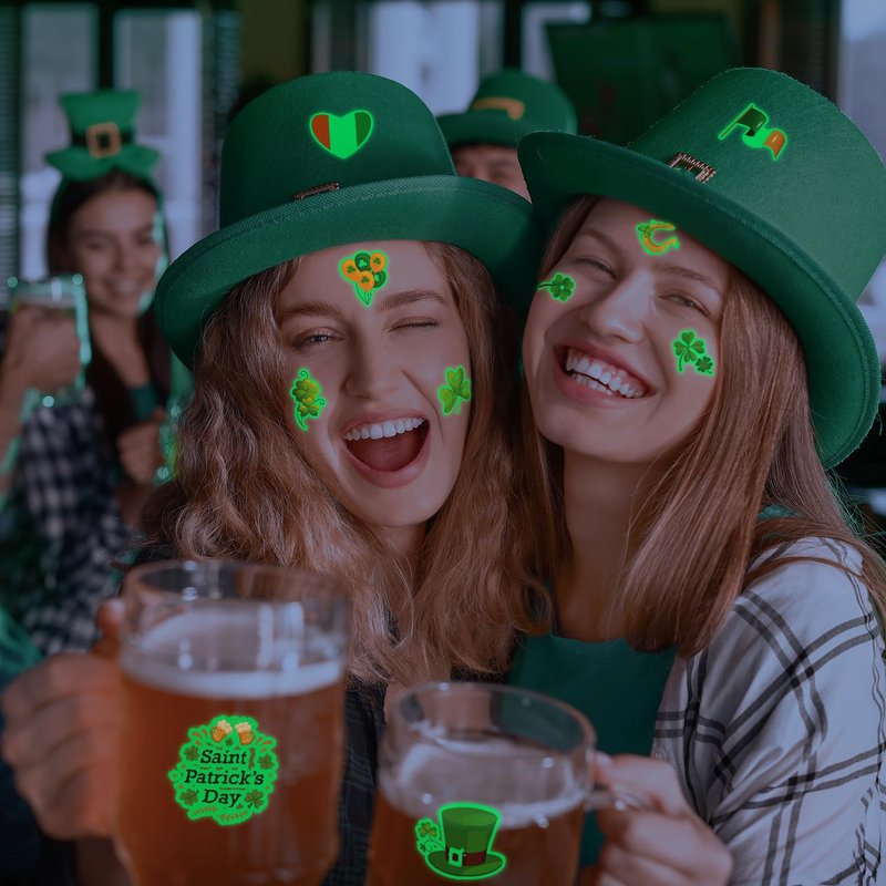 - St Patricks Day Accessories - There are 102 individually wrapped sheets, feature different St. Patrick's Day themes, includes shamrocks, irish flag, saint patricks welcome hat, beer and more. Applying multiple designs throughout the day or swap with your friends/family, extending the fun and interaction.