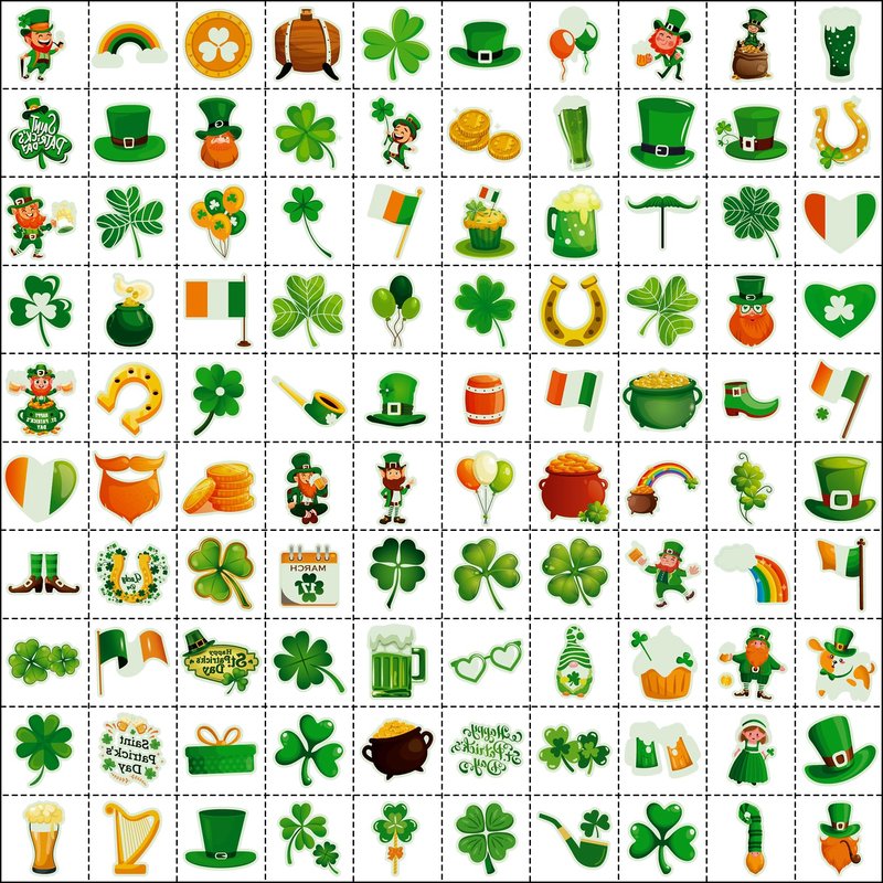 St Patricks Day Accessories - There are 102 individually wrapped sheets, feature different St. Patrick's Day themes, includes shamrocks, irish flag, saint patricks welcome hat, beer and more. Applying multiple designs throughout the day or swap with your friends/family, extending the fun and interaction.