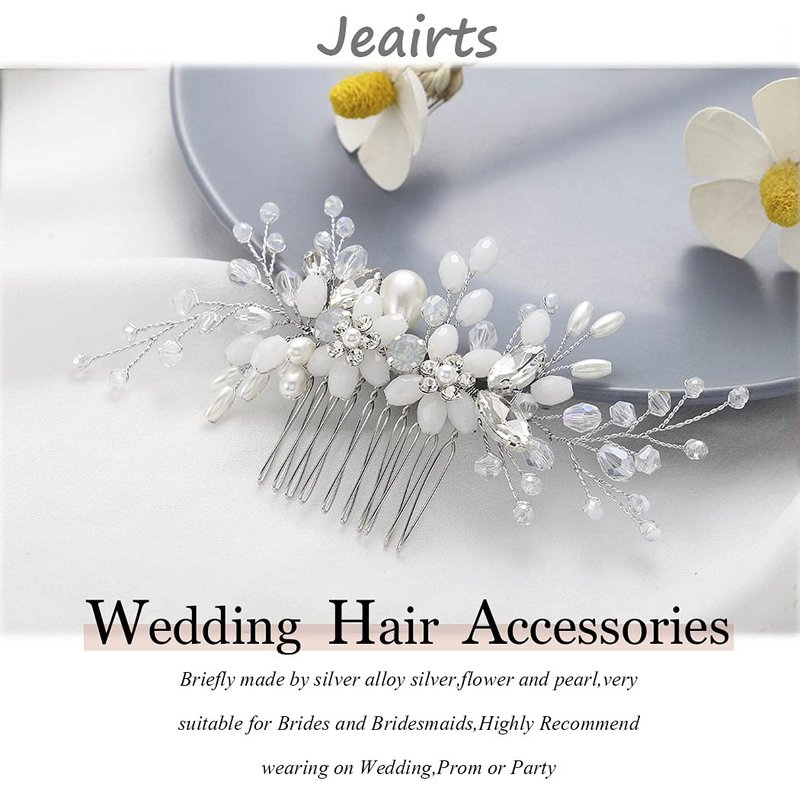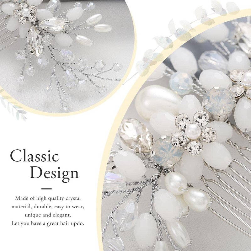 - Crystal hair comb is the actual idea of using rhinestone,pearl and white beadsElegant desigen enjoys unique appearance.