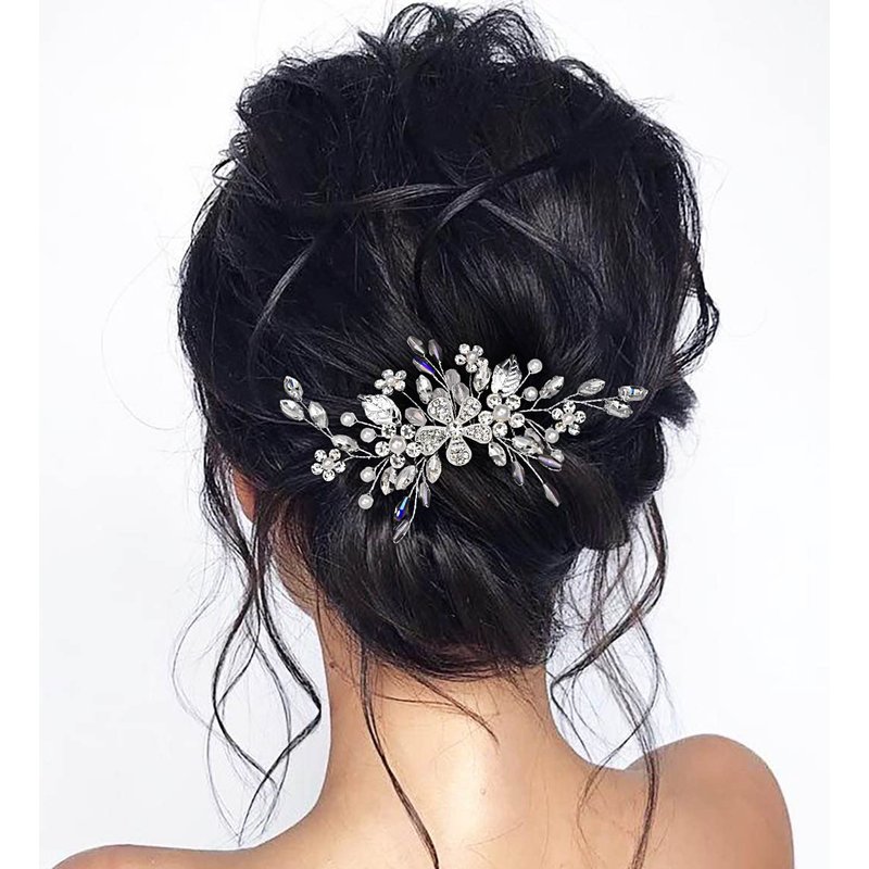 - Pearl bridal hair comb is made of alloy,flowers,pearls and crystals.Colors:Silver.Simple yet elegant to decorate any updo on wedding day.