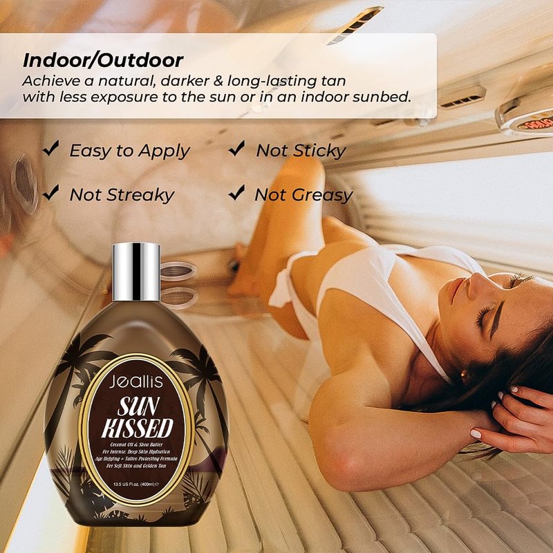 Jeallis Tanning Lotion for Indoor Tanning Beds & Outdoor Sun Tan, Tanning Lotion w/Tattoo Protecting Formula, DHA Free, 13.5oz