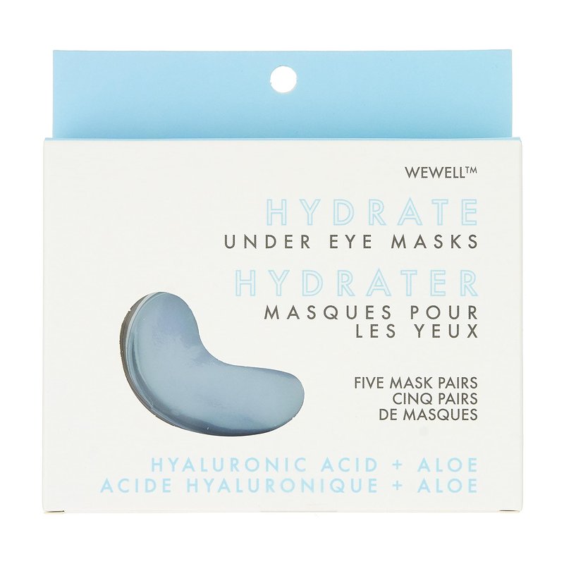 - WEWELL Hydrate Under Eye Masks (5 masks) - Hyaluronic Acid + Aloe - Under-eye masks that contain collagen, the same natural protein found in the skin. The masks firm and rejuvenate the skin and area around the eyes. The hyaluronic acid and aloe hydrate, restore and create an illuminating complexion.