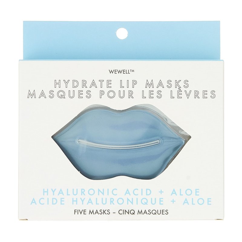 - WEWELL Hydrate Lip Masks (5 masks) - Hyaluronic Acid + Aloe - The Hydrate lip masks contain collagen, the same natural protein found in the skin. Infused with hyaluronic acid and aloe, the masks hydrate, brighten and smooth damaged lips while helping to firm and shape. This leaves lips feeling and looking beautiful and plump.