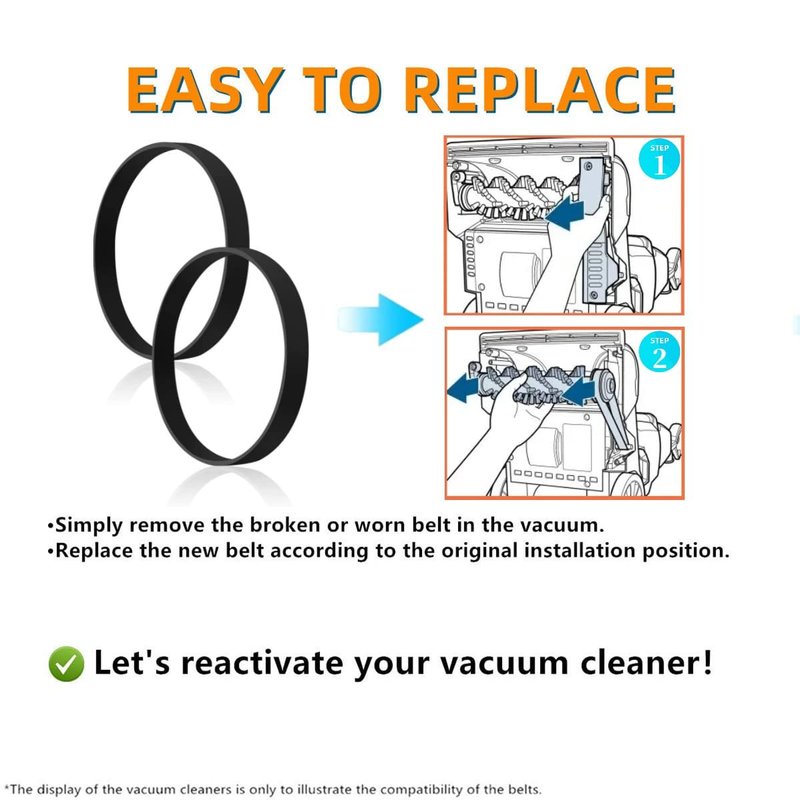 - Easy to Replace - Simply remove the damaged belt from your vacuum head and replace this new drive belt in the original position, bring your vacuum cleaner back to life!