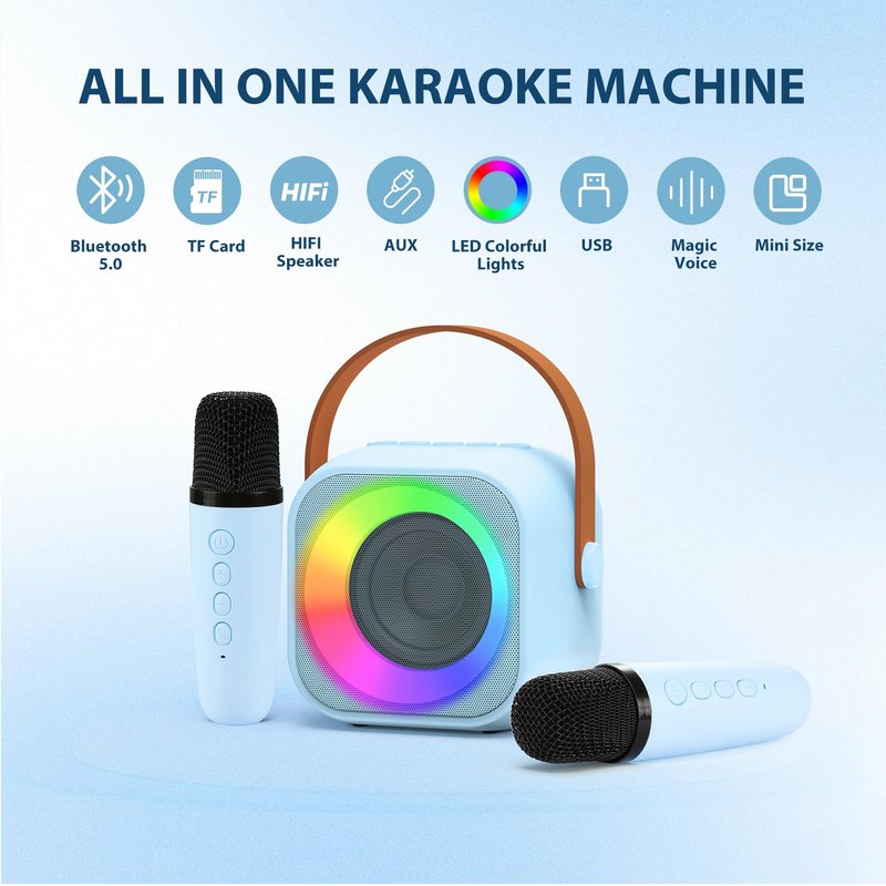 - Multi-functional Karaoke Machine: It comes with 4 magical sound effects, making it a fun and entertaining toy for children. The LED lights pulsate with the rhythm of the music, creating a joyful atmosphere. It also has a headphone output on the back. It is great for singing practice and home karaoke, with its compact size, making it convenient to carry while traveling.