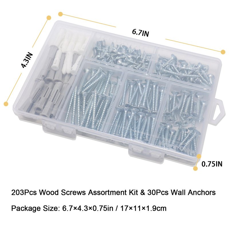 Package Quantity: 203pcs per kit with 5 sizes + 30pcs screw anchors