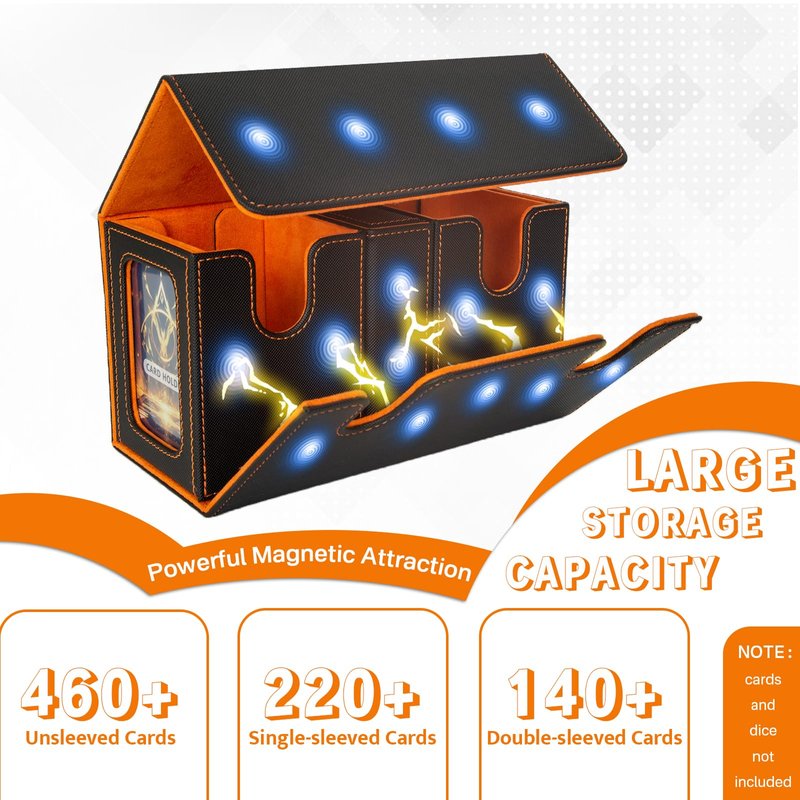 - Ample Capacity for 220+ Cards: The deck box accommodates two sleeved commander decks and additional dice or side cards. Each deck box holds 80 double-sleeved cards, making it suitable for multiple decks at game nights. Compatible with both double and single-sleeved cards