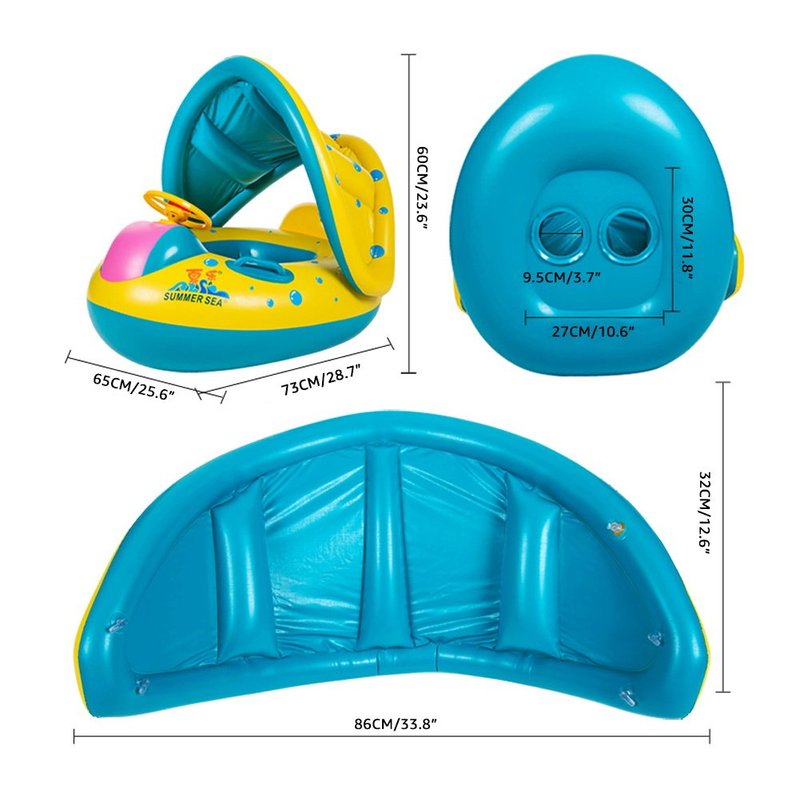 Product Name:Inflatable Baby Swimming Boat Product Size: After Inflate :58*72*38 cm/ 22.8*28.3*14.9 inch Product Material: Eco-friendly PVC Afford Weight: Around 45 lbs Recommended Age: 1-3 Years