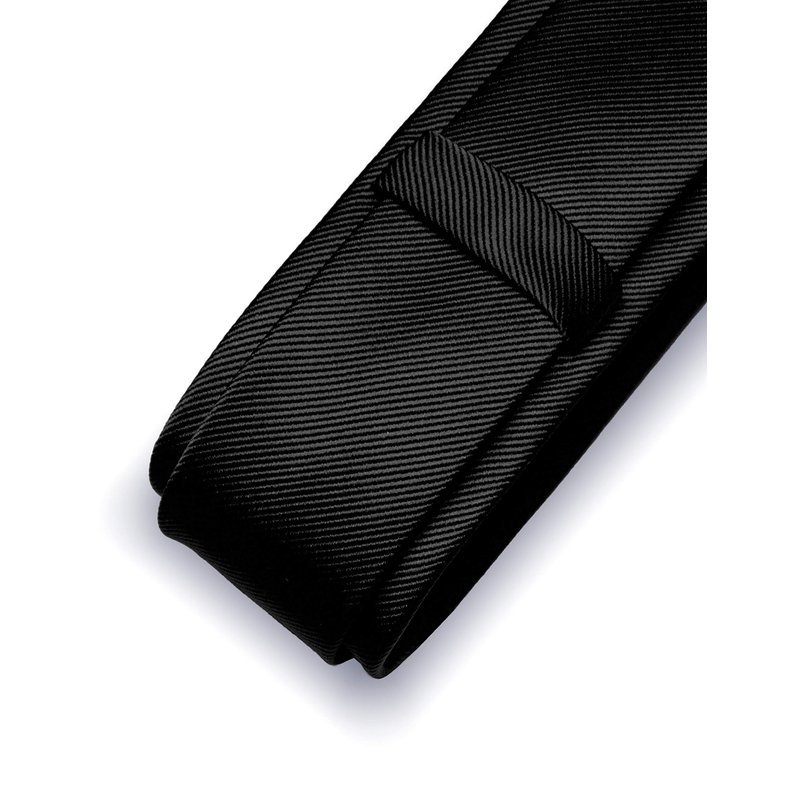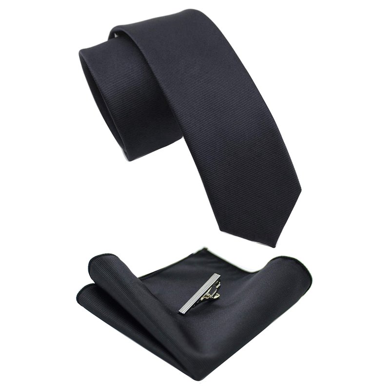 JEMYGINS 2.4" Black Skinny Tie and Pocket Square with Tie Clip Silk slim Necktie Sets for Men