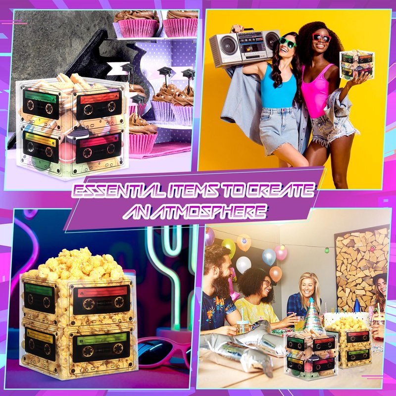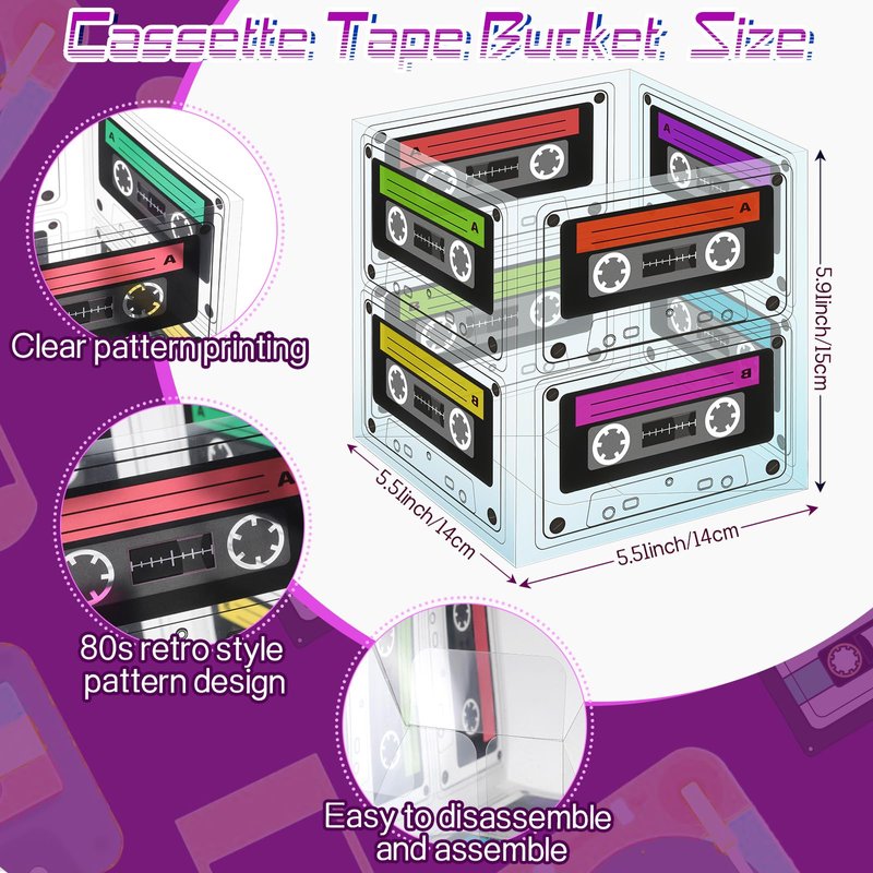 - Sturdy and Reusable: crafted from quality PVC material, these cassette tape buckets are built to last; With their cool cassette design and vibrant neon colors, they are sure to be a hit at your upcoming hip hop or throwback party; Plus, they can be easily disassembled and stored when not in use, saving you valuable storage space