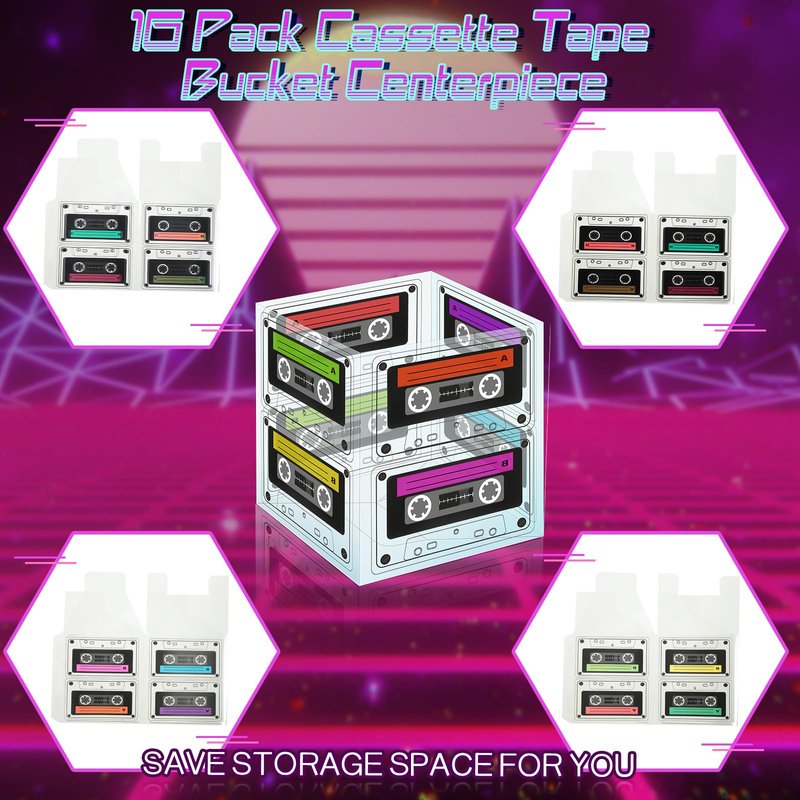 Jenaai 16 Pcs Cassette Tape Bucket Centerpiece Retro 80s Party Supplies 90s Party Decorations Foldable Cassette Hip Hop Party Decorations Tape Bucket Table Decor for Adults (5.91'')