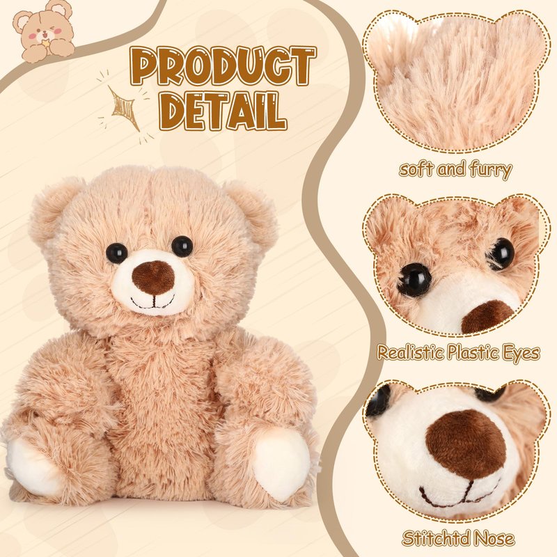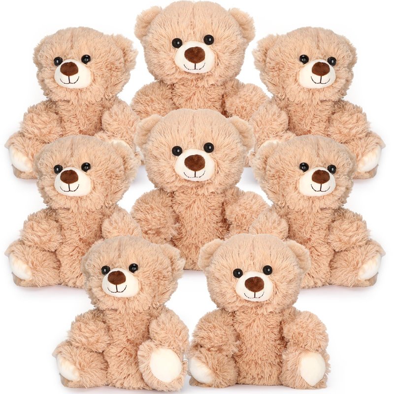 - Generous Bundle: each pack comes with 8 enchanting 10 inch bears, ensuring there's ample joy to spread around; Share with family and friends, or have an army of comfort awaiting you at every corner; Touching it can bring you warmth and good mood throughout the day; Be warm by its smiling face and get simple happiness
