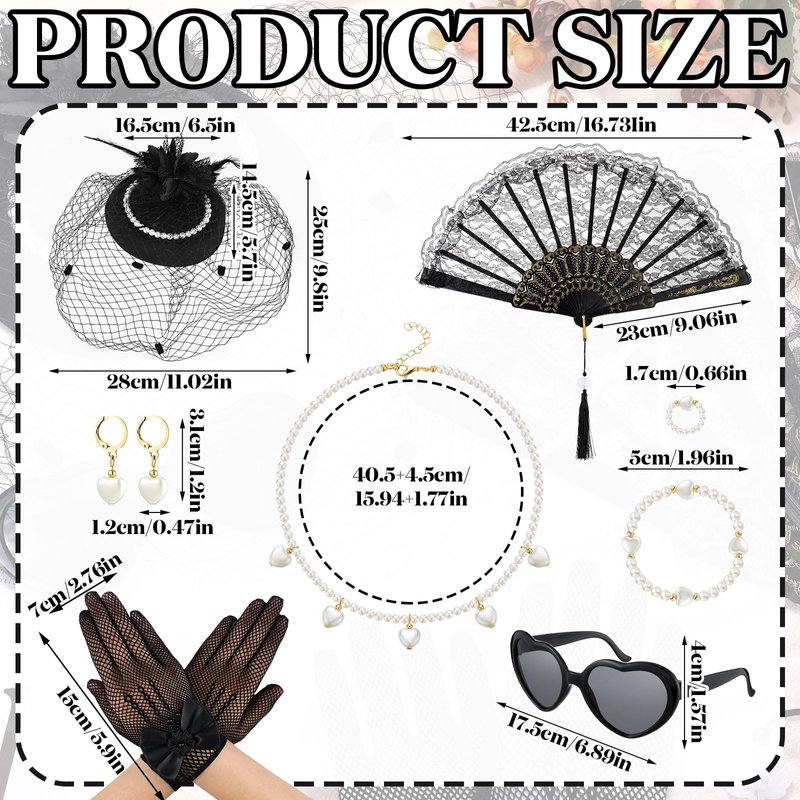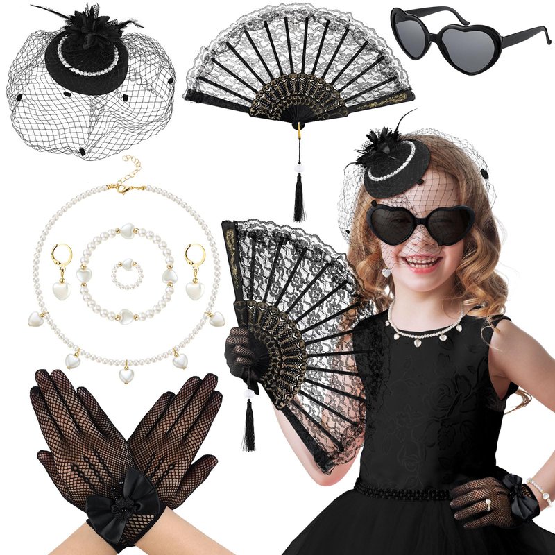 - Girls Tea Party Set: the package contains a total of 8 pieces of tea party supplies, including 1 black children's tea party hat, 1 pair of black gloves, 1 black lace fan, 1 pair of black glasses, 1 necklace, 1 bracelet, 1 pair of ear clips and 1 ring; The rich combination is enough to satisfy your tea party decoration needs