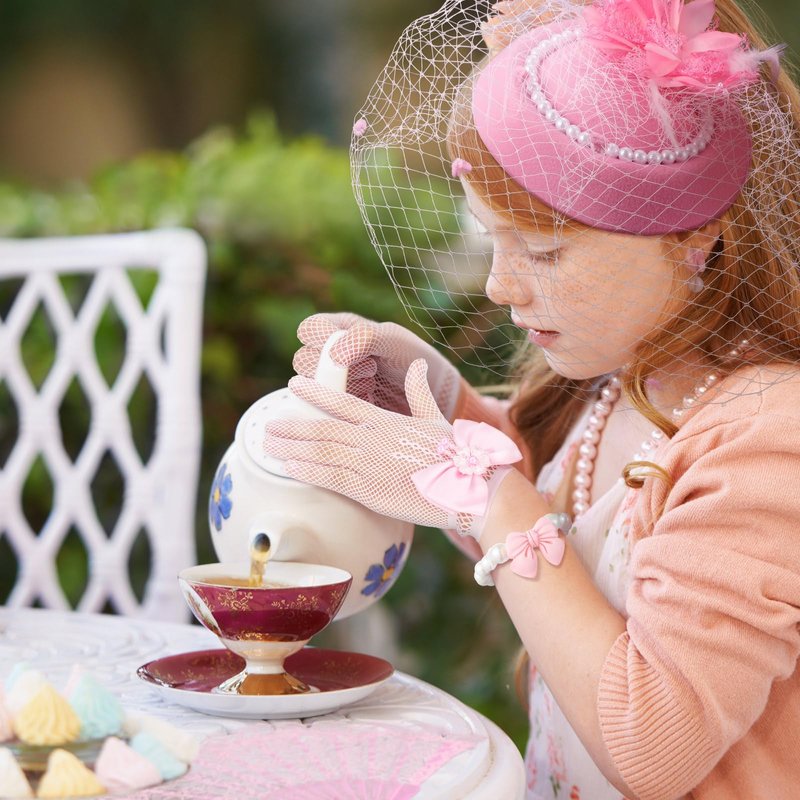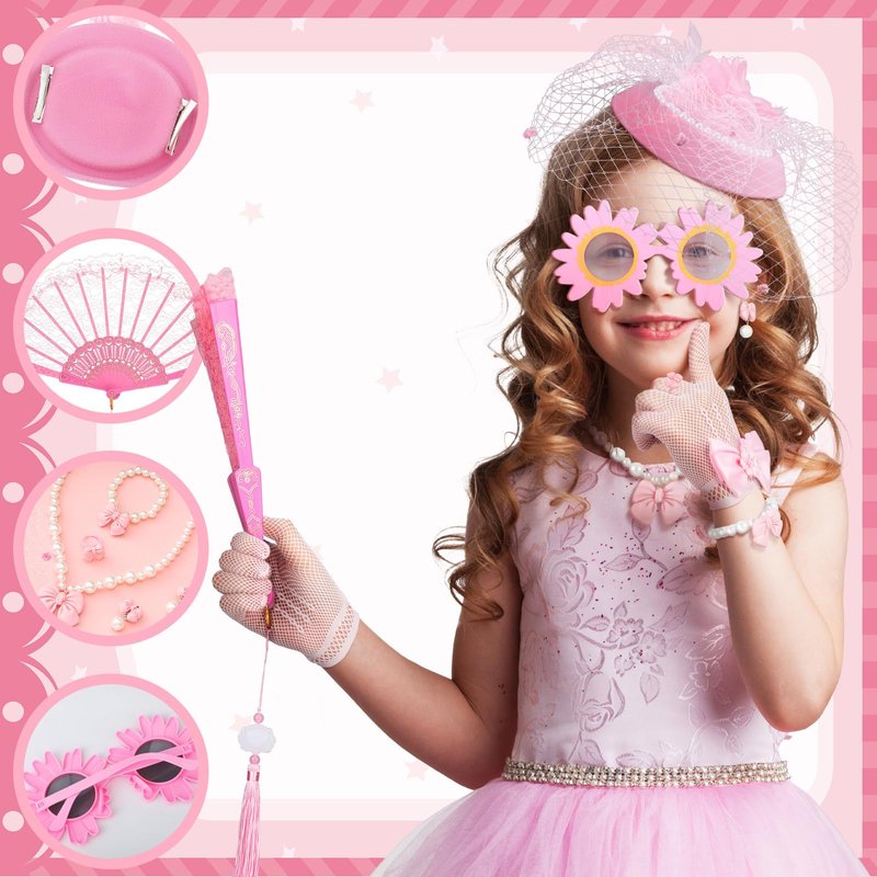 - Girls Tea Party Set: the package contains a total of 8 pieces of tea party supplies, including 1 pink children's tea party hat, 1 pair of pink gloves, 1 pink lace fan, 1 pair of pink glasses, 1 necklace with pink bow, 1 pink bow bracelet, 1 pair of pink bow ear clips and 1 pink bow ring; The rich combination are enough to satisfy your tea party decoration needs