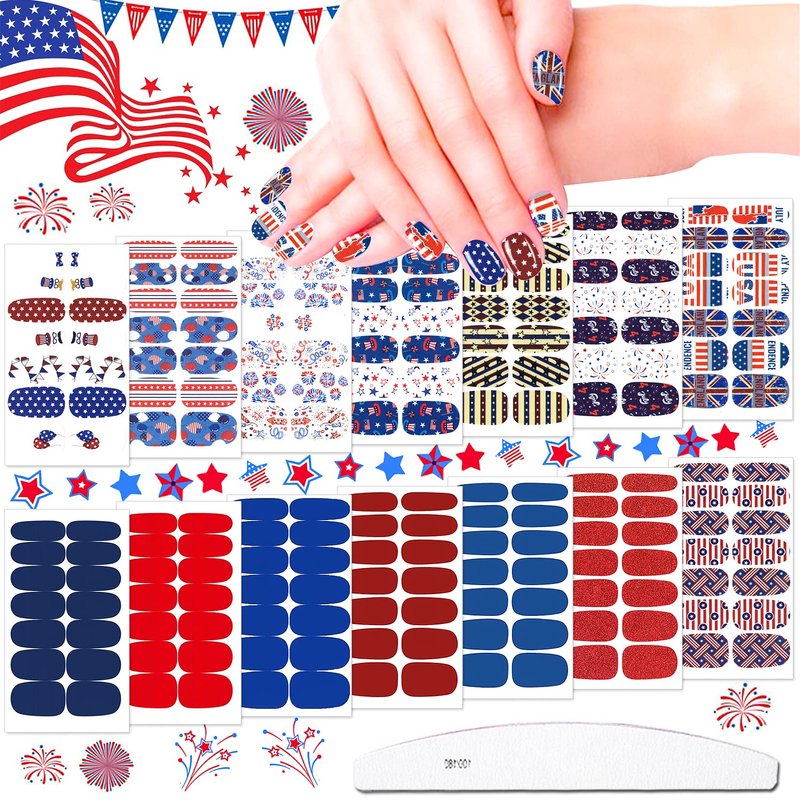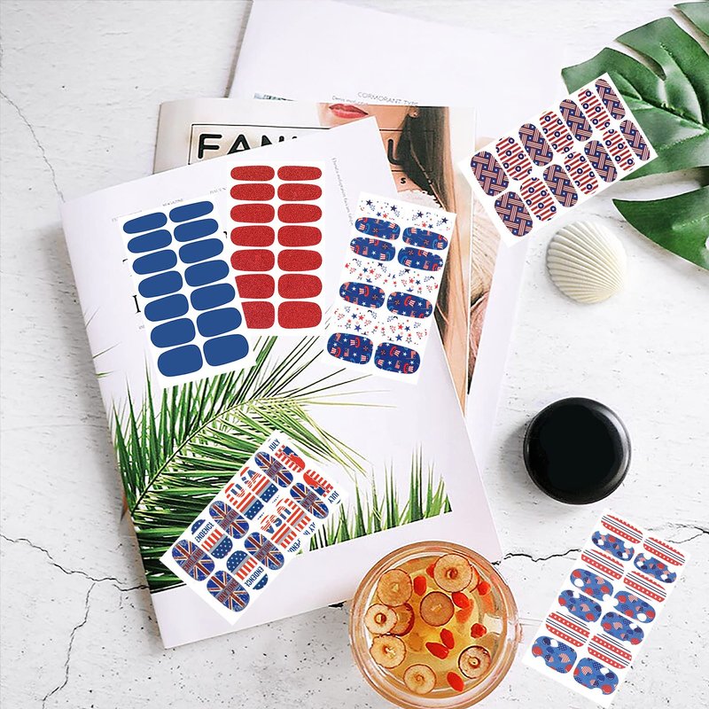 - 🇺🇸【Simple to Operate】:The colorful Independence Day nail wraps are self-adhesive and convenient to use, just choose the patterns you like and paste them on your nails, then apply a layer of nail polish to fix them, you can also match them with a colored base coat or combine different patterns together.