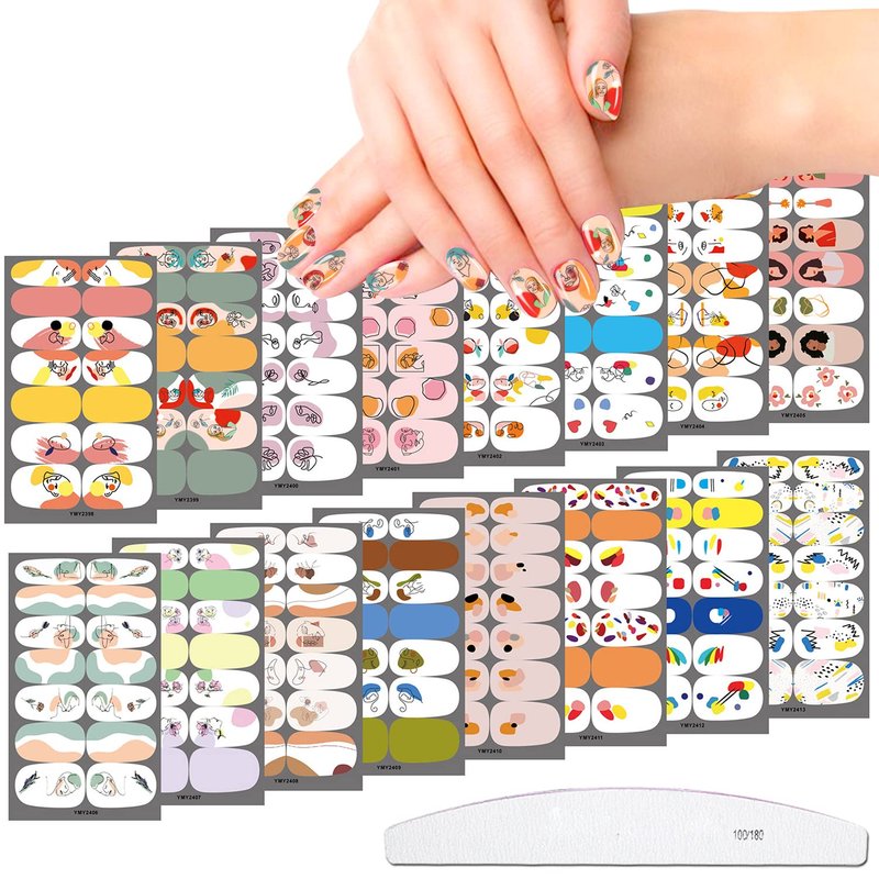 - 🎭【PACKAGE CONTENTS】: 16 sheets self-adhesive abstract painting series nails art stickers in different patterns and sizes + 1pc moon shape nail file. 14 pieces for each sheet, 224 pieces in total.