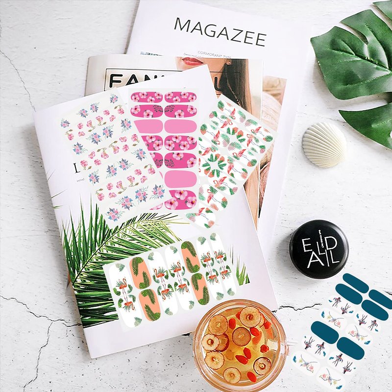 - 🌺🦩【SPECIFIC INFORMATION】: these full wrap nail stickers are made from removable self-adhesive resin material, non-toxic and odor, no harm for your nail and skin. Each sheet of full wrap nail sticker measures approx. 10 x 5.5 cm/ 4 x 2.2 inches, lightweight and convenient to carry and store without taking up much space.
