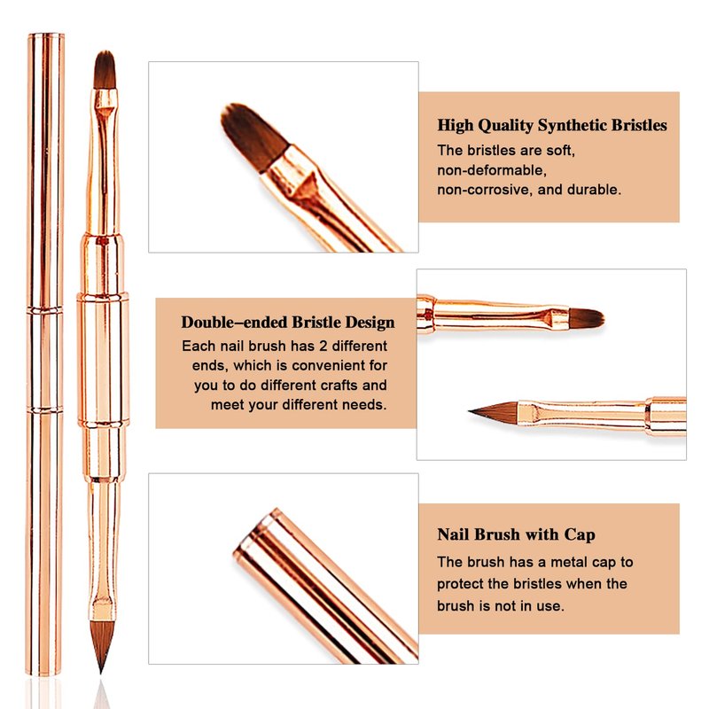 - 💟【10 Different Brush Heads】-- 5pcs professional double-ended nail art brushes, including 10 types of nibs: lace brush, crystal brush, carving brush, drawing brush, painting pen, painting flower pen, round and flat head gel builder brush, etc. Multiple choices, suitable for nails specialist and nail learner.
