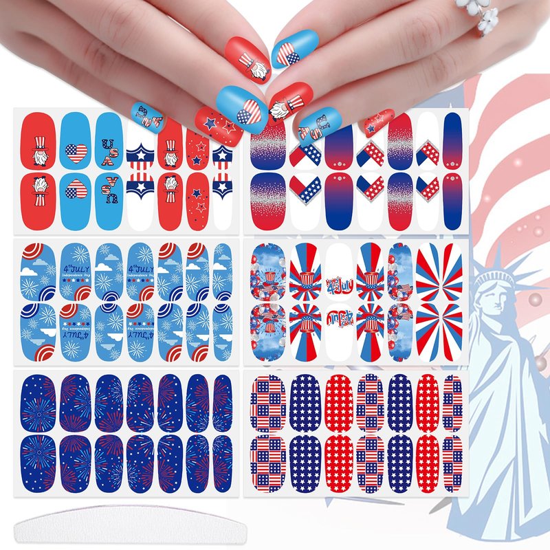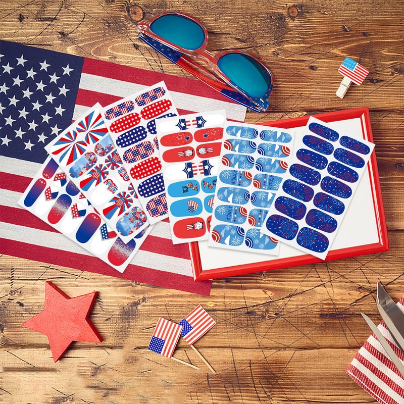 • 【Multiple Choices】:You will get a total of 6 sheets of 4th of July nail polish sticker decals, enough quantity for your different decoration use and you can share them with your friends and family members.
