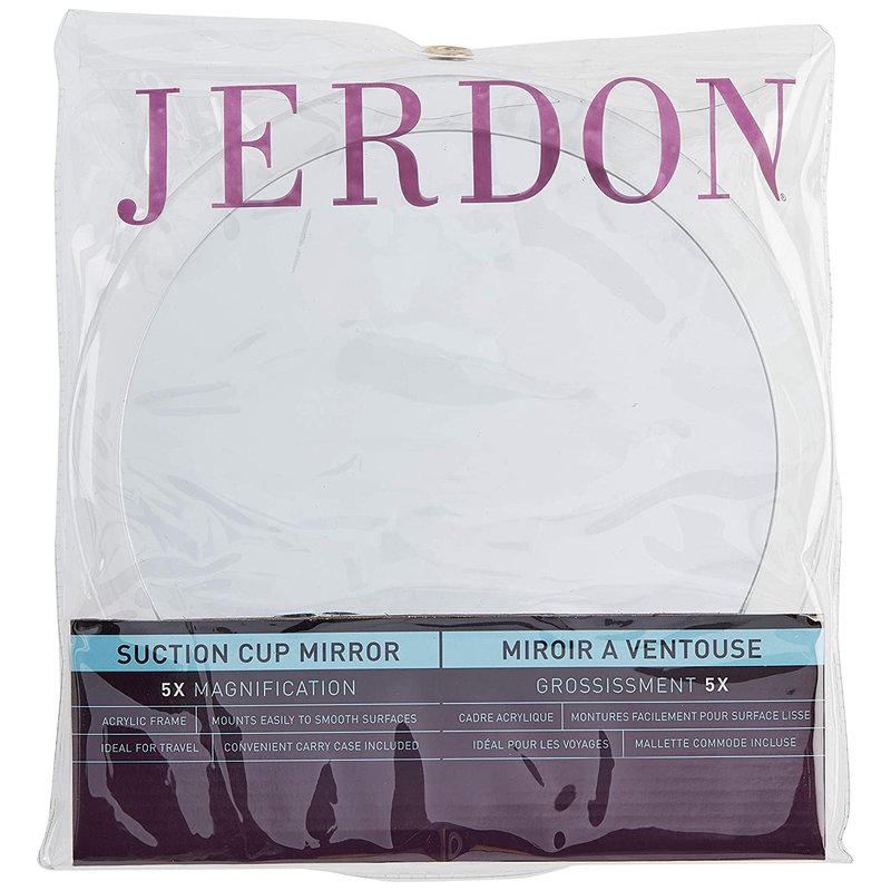 Jerdon Clear Portable Makeup Mirror - 9-Inch Diameter Makeup Mirror with Suction Cups and Vinyl Travel Case - 5X Magnification - JSC5