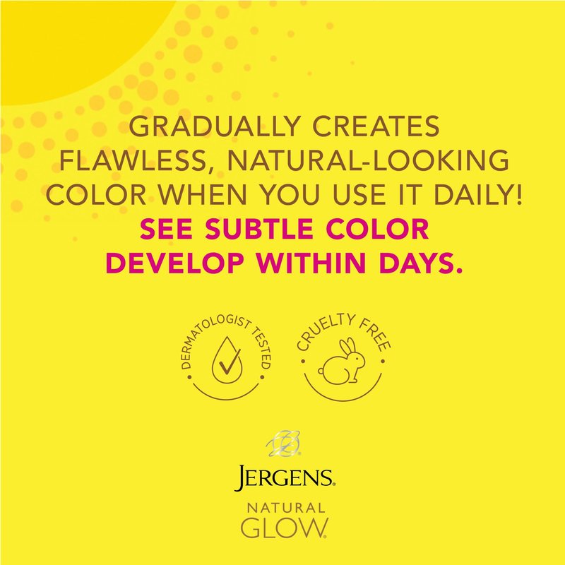 - JERGENS GLOW HEAD-TO-TOE-BUNDLE - This bundle includes 2oz Jergens Natural Glow Fair to Medium face moisturizer and 7.5oz Jergens Natural Glow +Firming Fair to Medium Daily Moisturizing Body Lotion