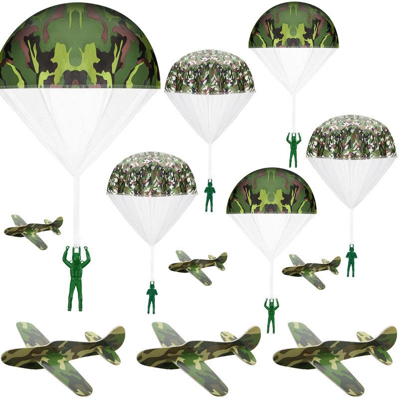 - Camouflage Combination: the package contains 10 pieces of camouflage foam airplanes and 10 pieces of parachute toys in 2 designs, 5 pieces per design, nice combination can nicely satisfy your playing needs