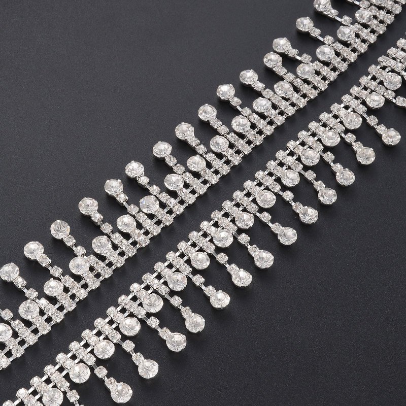 Jerler Rhinestone Tassel Fringe Trim Crystal Close Chain Applique for Sewing Crafts Ideal Wedding Party Clothing DIY Decoration, 2 Yards 0.87"W