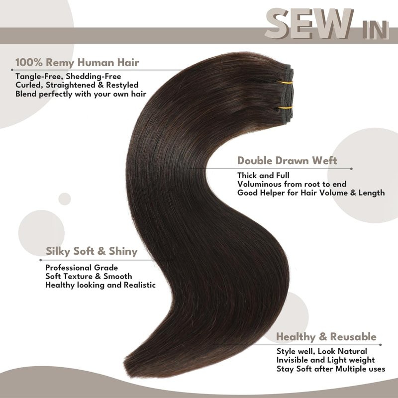 - 【Double Weft &Anti-Shedding Craftsmanship】Jerriess Sew in hair extensions adopted Anti-shedding Double Weft craftsmanship, two wefts sewing together to hold hair more stably. The double weft process not only offers sturdiness and durability which make Human Hair weft extensions tight &shedding free, also created with fullness of hair volume. It's Good Helper for Hair Volume and Length, You can get ideal Length and Volume with Weft Hair extensions.
