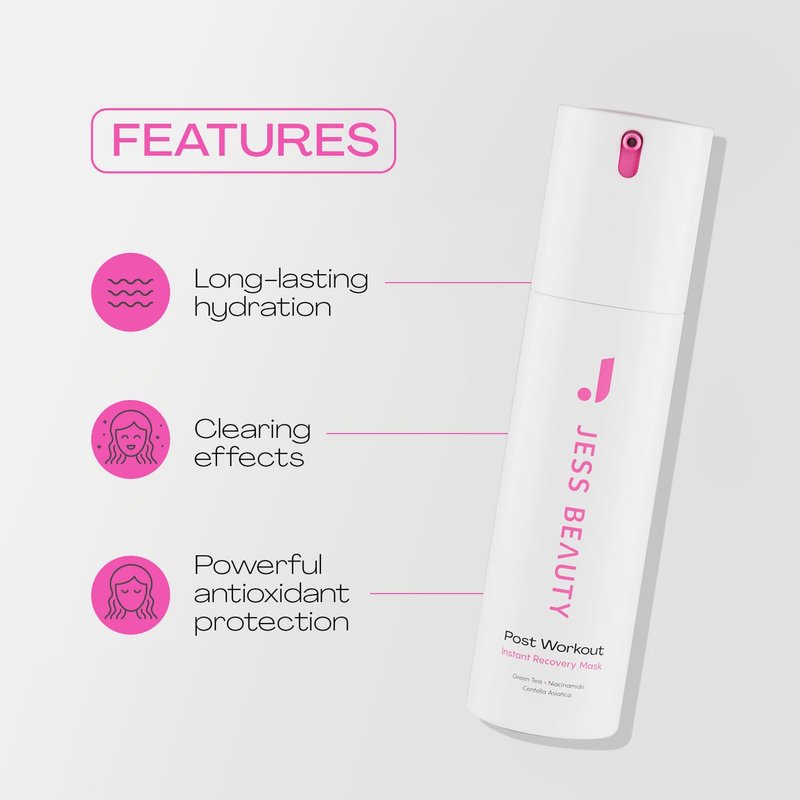 Introducing the JESS BEAUTY Post-Workout Gel Mask, your ultimate skincare solution for instant relief and hydration after intense workouts. This revitalizing gel mask is specially formulated to provide extended moisture and nourishment, preventing skin dehydration and ensuring a firmer, clearer complexion. Experience the transformative power of our gel mask as it effortlessly freshens and hydrates your skin, leaving you feeling revitalized and energized. Its gel-like consistency makes it a versatile option that doubles as an all-day moisturizer, ensuring your skin stays nourished throughout the day. Our gel mask acts as a potent antioxidant, shielding your skin from free radicals caused by environmental stressors like UV radiation and pollution. Enjoy the soothing effects of Green Tea, which also helps reduce inflammation and promotes a healthy complexion. Infused with Niacinamide, a derivative of vitamin B3, our gel mask helps with hyperpigmentation and dark patches, enhancing your skin's natural radiance.