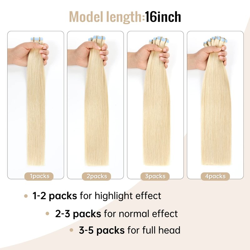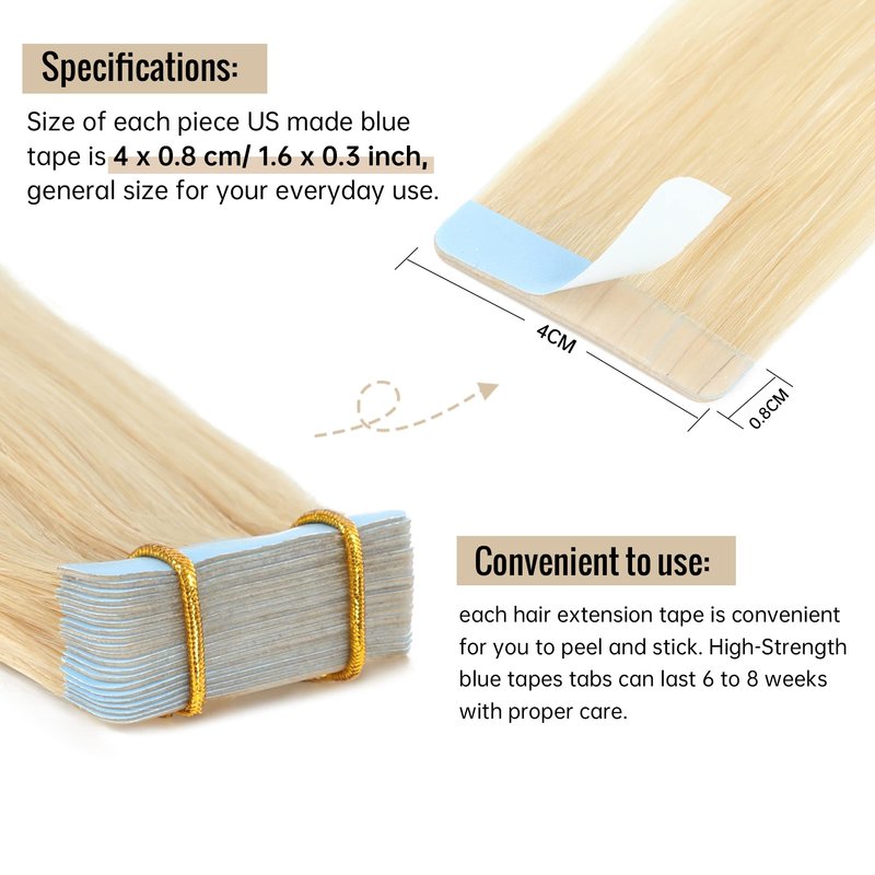 - 【High Quality Remy Hair Extensions】100% remy tape in human hair extensions, salon quality. Our hair extension is soft and silky with healthy shine, and there is no tangle and shedding. They can last 2-3 months with good care. And you can treat them & styled (washing, strengthening, curling, etc.) them like your own hair.