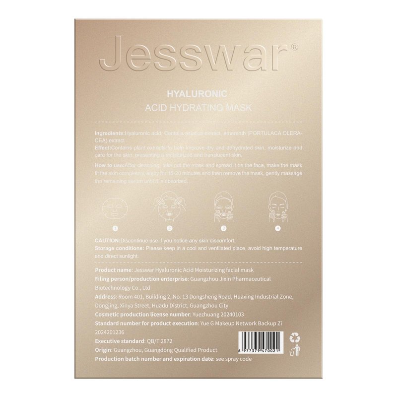 jesswar 10 Sheet Facial Mask Hyaluronic Essence with Centella Asiatica Deep Hydration and Moisturizing