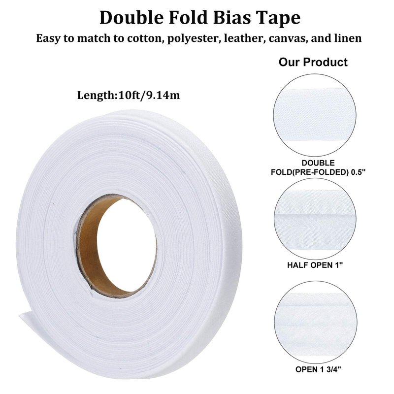 1/2 Inch double fold bias tape white bias binding tape wide fold tape for sewing seaming hemming piping quilting projects
