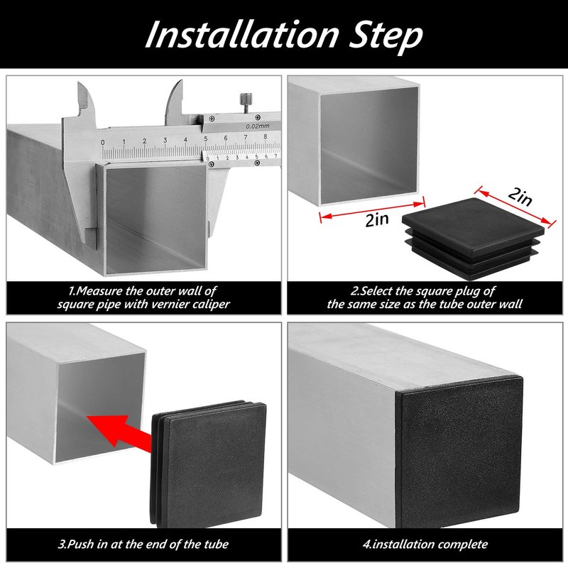 - Size information: these square tubing caps measure 2 inches long, 2 inches wide and 0.7 inches high, which can go well with 2 inch pipes with an outside diameter of 2 inches