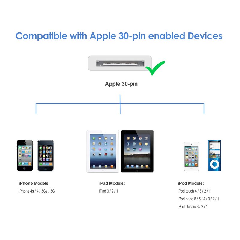 - Package Includes: JETech 1m 30-pin to usb cable, customer service card