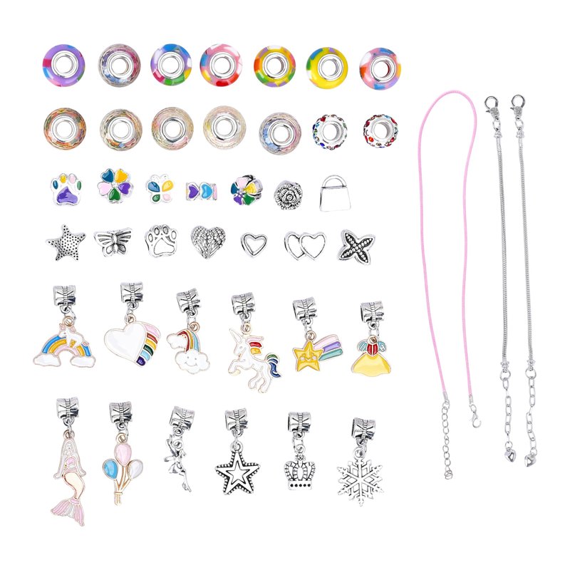 - UNLEASH CREATIVITY: With 43 pieces including themed charms like stars, hearts, unicorns, and more, Our kit inspires imaginative designs, allowing kids to create unique bracelets and necklaces daily.