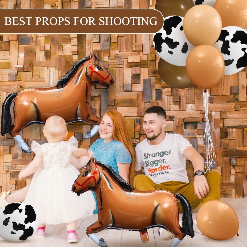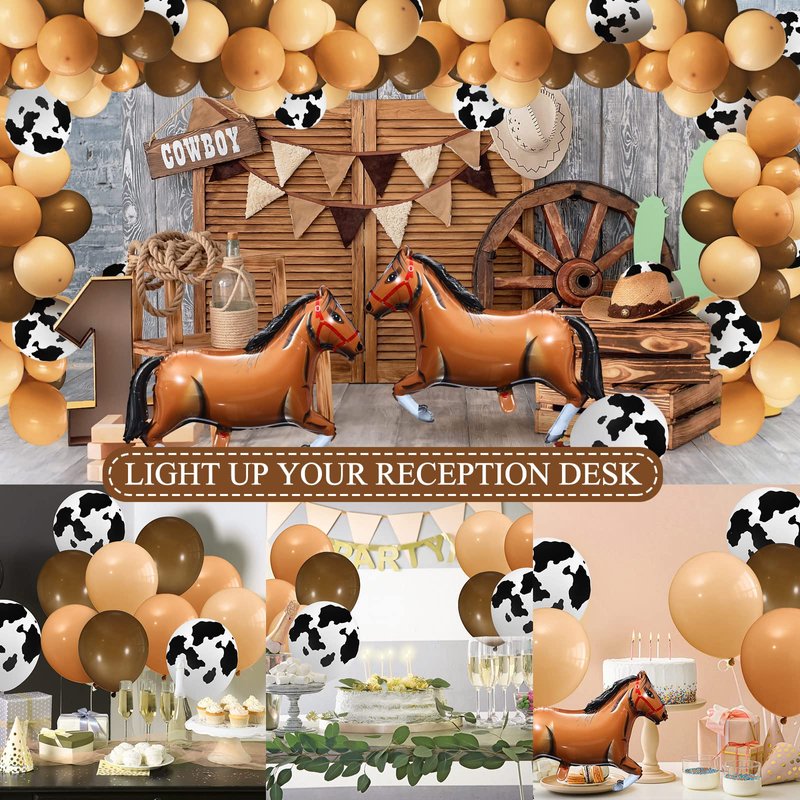 - Neutral Style: black and white brown balloon garland kit has no fixed gender, suitable for decorating parties of baby boys and girls, easy to get compliments from most people; Cow prints and horse shaped balloons make cowboy themed parties more attractive and memorable