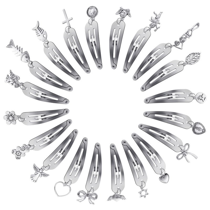 Jexine 20 Pcs Snap Hair Clips for Women & Girls, Silver, 2 Inch, Heart, Star, Cross, Hair Accessories
