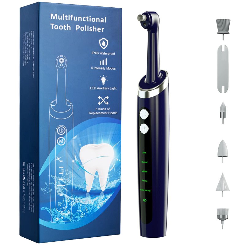 - 【5 replacement heads】 Tooth Polisher Electric Professional has 5 different replacement heads: 3D silicone tip, umbrella polishing head, flat bristle brush head, pointed bristle brush head, polishing massage cup. The unique design easily removes stubborn stains, flat stains, and interdental stains from teeth, making teeth smoother and shinier.