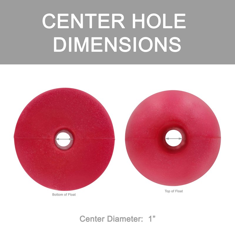 - RED FLOAT MEASUREMENT: 5 Inches x 11 Inches, 1" Center Hole