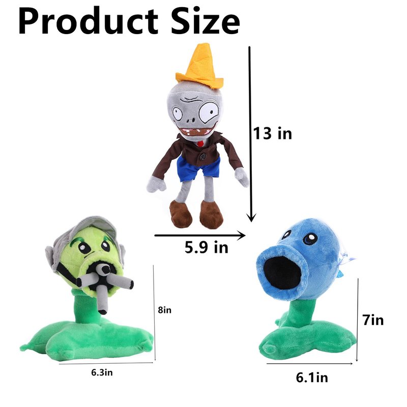 - Package: 1 PCS Conehead Zombie Plush + 1 PCS Gatling Peashooter Plush + 1 PCS Ice Peashooter Plush