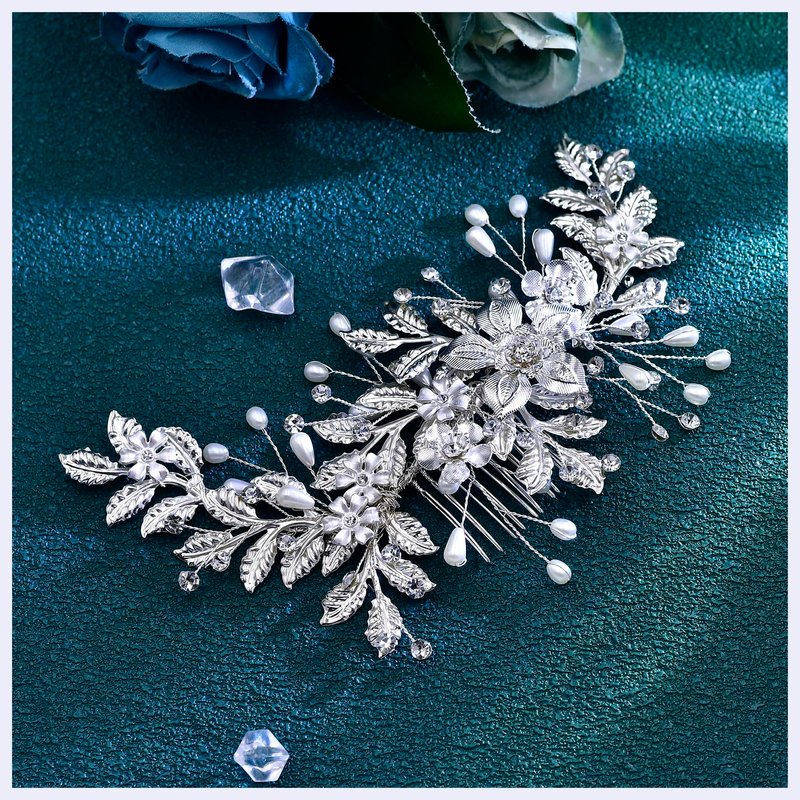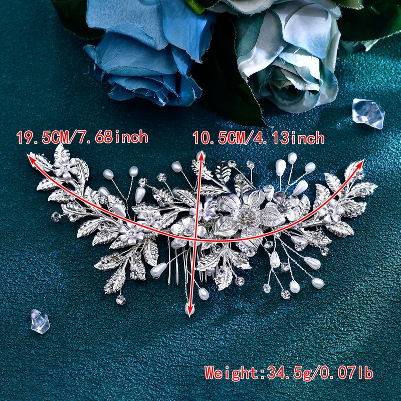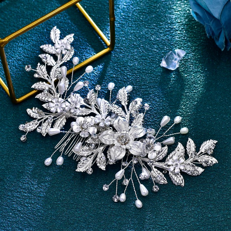 - 【Pearl Hair Comb】: Alloy flowers, leaves are matched with crystals and pearls, and the simple and elegant design brings a unique look.