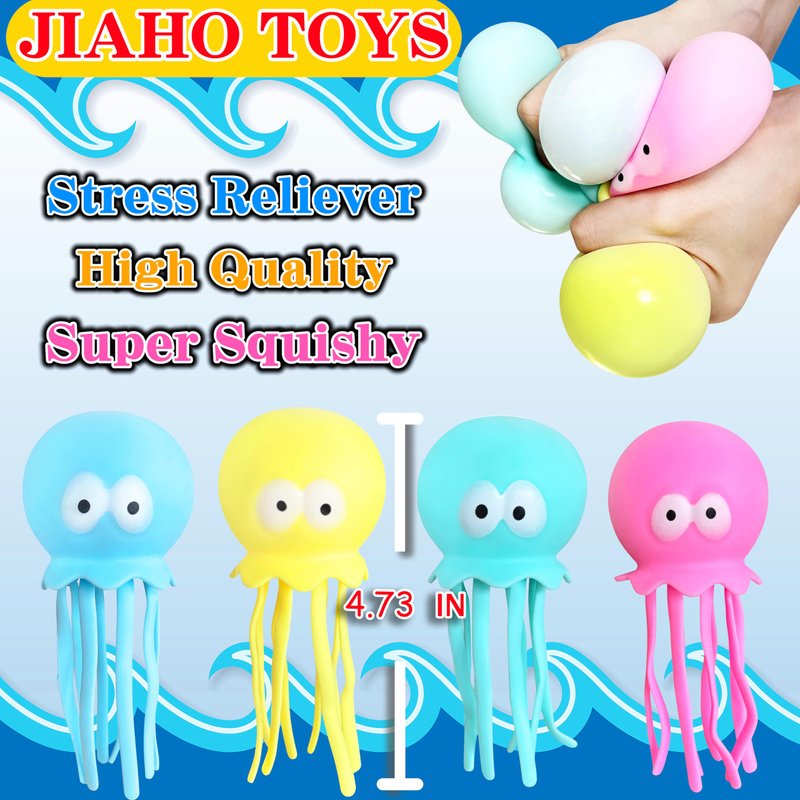 - Relieve Stress And Anxiety: These 4 Pack Octopus Squishy Stress Balls are the perfect squishy toys for kids and adults to squeeze away anxiety. Great for relaxation, focusing, and calming tools. Squeezing these soft sensory balls helps release stress, leading to improved relaxation and mental clarity. They are ideal for Autism, ADHD and OCD.