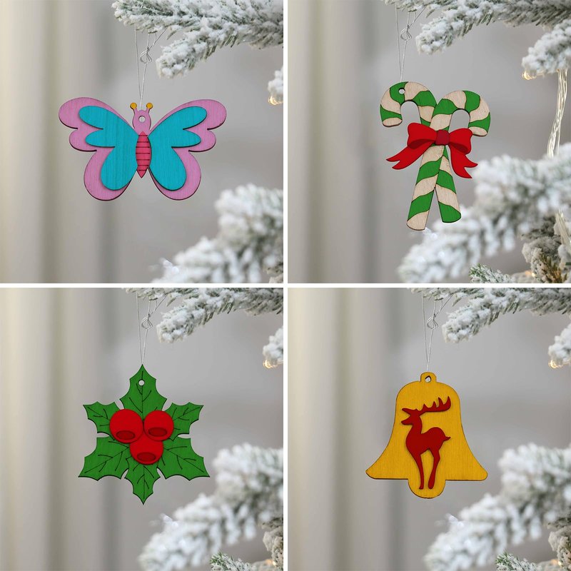 - DIY Wooden Christmas Hanging Crafts Ornaments: This crafts set is designed to inspire creativity and provide hours of fun for families. These decorations can also be used for Christmas tree and other scenes that you want to decorate.