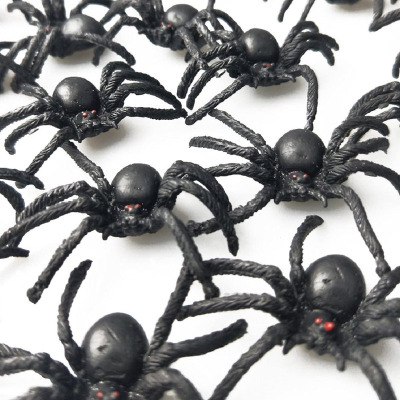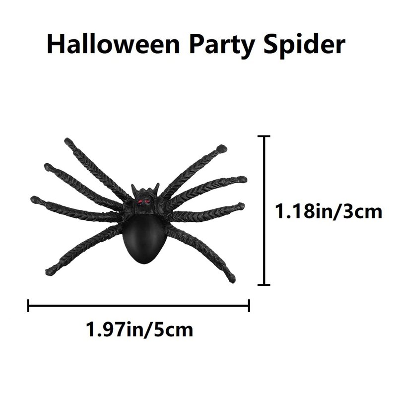 - Each pack contains 50 spider. Perfect addition to your Halloween Party, Halloween Decorations or mischief props in All Fool's Day.