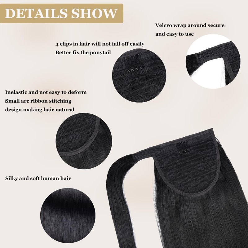 - 【Ponytail Extension Features】You can easy to wear and take off,no damage to your own hair,premium 4 comb clip in inner net,ensure that the human hair ponytail and your own hair are firmly fixed and not falling off.just few seconds and you will get a long thick ponytail like magic.