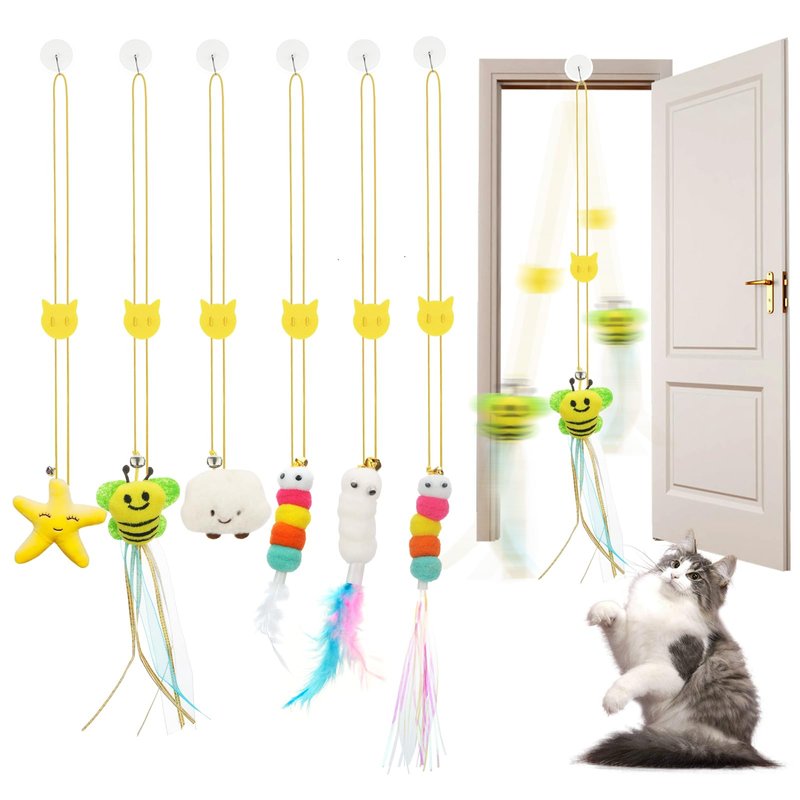 - Self Play & Hands Free: Jiaron hanging cat toy make the Cat kitten enjoy by themselves when you are busy, and free your hands. And let the furry baby to pull, jump and bite it to make the fun exercise after hanging from the door.